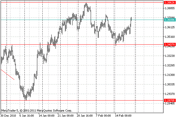 В пятницу в середине торговой сессии тренд по евро резко развернулся, спрос на европейскую валюту стал расти лавинообразно, после жестких заявлений со стороны европейского Центробанка. Представитель Управляющего Совета Банком Бини Смаги заявил, что ЕЦБ может начать повышение процентных ставок, на фоне растущей инфляции в Еврозоне. Напомним, что последним данным по оптовым и розничным ценам, пороговый уровень инфляции в 2% в зоне обращения евро, был превышен на 0,4 %. Согласно предварительной оценке, инфляция в январе составила 2,4% в годовом исчислении - максимум с октября 2008 года - по сравнению с 2,2% месяцем ранее. Согласно прогнозу ЕЦБ, инфляция в регионе в 2011 году составит в среднем 1,8%, в 2012 году - 1,5%.