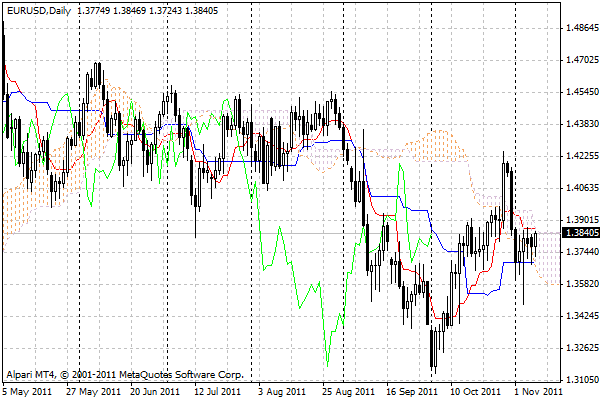 Однако, несмотря на эти негативные для евро факторы - торги вчера и сегодня проходят в довольно спокойном ритме – пара евродоллара торгуется в узком корридоре в 1,385 – 1,365 долларов. Как и предполагалось в начале недели евро будет довольно устойчив, первое это то, что рынки уже подустали от негатива, связанного с долговыми европейскими проблемами, долговой кризис вошел в вялотекущую стадию – по большому счету рынки не верят в то что Европа отпустит Грецию и тем более Италию из зоны евро, а отставка Папандреуса в Греции, вселяет еще большую надежду в рынка в то, что новое правительство Греции будет более покладистым и без проволочек примет условия Евросоюза и примет транш помощи. Примерно такая же ситуация и с Италией, Берлускони слишком независимая фигура и политический долгожитель, слабо поддающийся давлению извне, Берлускони мог бы пойти на рискованный шаг, отказаться от евро и девальвировать лиру. Однако на данный момент отставка Берлускони сейчас уже почти неизбежна, и в Евросоюзе надеются что с новым премьером Италии будет проще вести диалог.