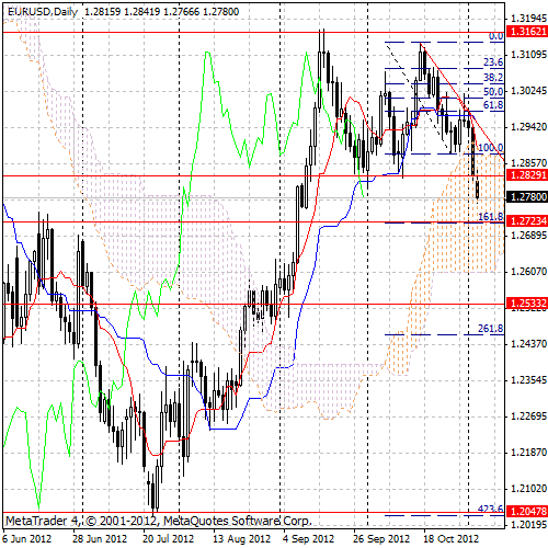 В итоге сегодняшней торговой сессии европейская валюта пробила уровень поддержки 1,283 и вплотную приблизилась к уровню 1,272 доллара.