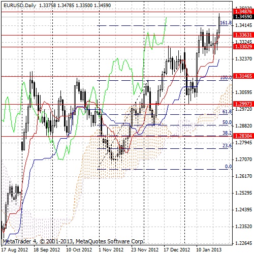 Кроме этого росту оптимизма на европейских рынках посодействовал и Марио Драги. На всемирном форуме в Давосе глава ЕЦБ отметил, что Еврозона имеет хорошие перспективы в текущем 2013 году. Экономика стран евро начнет восстанавливаться во второй половине года. «Все индексы указывают на существенное улучшение финансовой ситуации», — отметил он. При этом, по словам главы ЕЦБ, укрепление финансового рынка пока что не повлияло на состояние экономики в целом. В целом, считает Драги, начало 2013 года выглядит более перспективным для экономики еврозоны, чем начало прошлого года.
