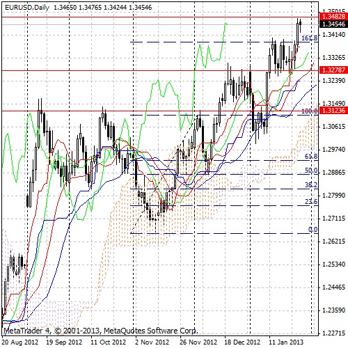 Уже к середине торговой сессии положение несколько выровнялось после выхода данных по экономике США. Однако данные по США были не столь однозначны, что сформировало довольно неровный ход торгов на американской торговой сессии. Объем заказов на товары длительного пользования в США в декабре 2012 года вырос на 4,6% по сравнению с уровнем предыдущего месяца, свидетельствуют данные министерства торговли страны.