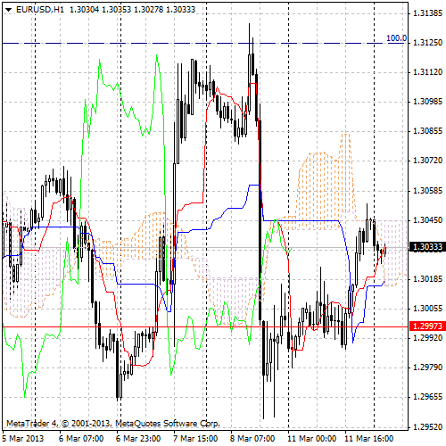В четверг заявления европейского ЦБ вызвало ралли по евро. ЕЦБ оставил ставки рефинансирования на прежнем уровне, несмотря на то, что по оценкам самого центрального банка экономические перспективы в 2013 году будут ухудшаться. По словам Марио Драги в 2013 году ЕЦБ ожидает более глубокая рецессия, чем предполагалось ранее. Совокупный объем валового внутреннего продукта (ВВП) стран зоны евро сократится на 0,5 процента, сообщили эксперты ЕЦБ в ежеквартальном прогнозе, обнародованном в четверг, 7 марта.