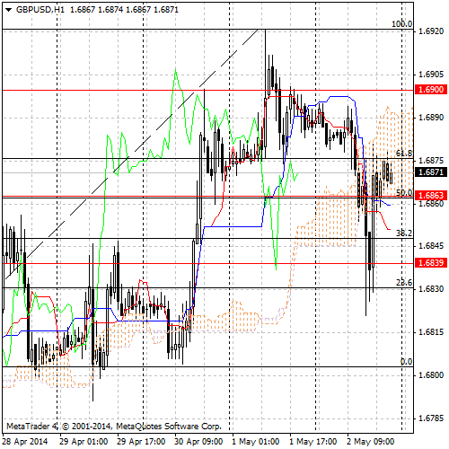 В итоге позиции фунта ст не смогли восстановится до вчерашнего пика. На графике сейчас четко видно что фунт выходит из трендовой зоны и стабилизируется в нейтральной между уровнями 1,687 и 1,69 долларов