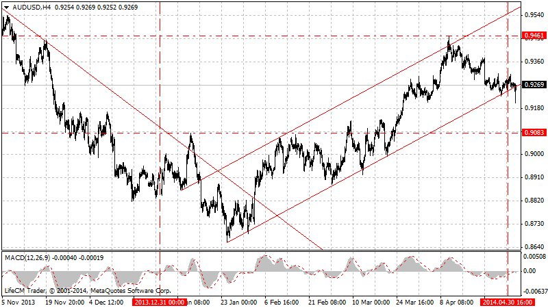 Лидирующей валютой, определяющей вектор торгов в группе сырьевых валют, по-прежнему является австралийский доллар. Напомним, что курс AUDUSD уже в первые дни нового, 2014 года, обозначил свой среднесрочный вектор. Вектор, который затем сохранялся в течение четырех месяцев, до окончания апреля.