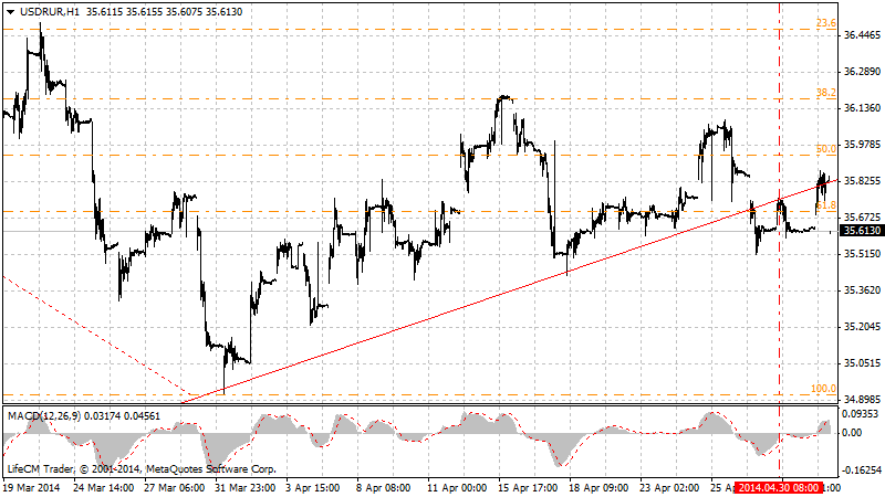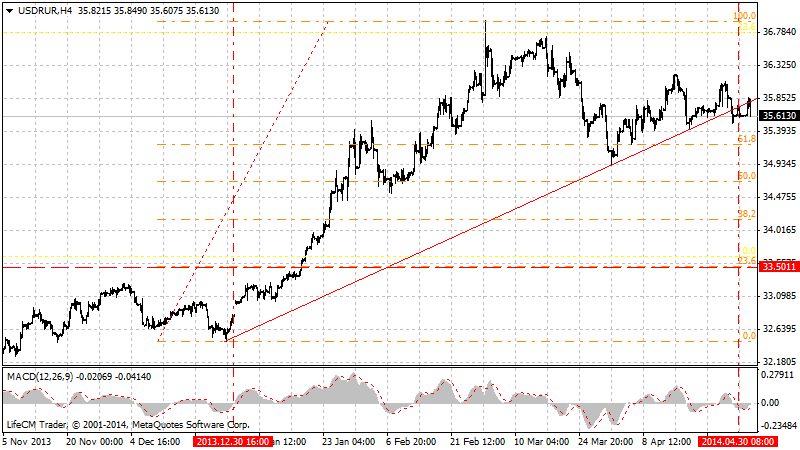 Сегодня можно весьма осторожно предположить, что начавшееся снижение (при реализации наиболее медвежьего сценария) может продолжиться до уровня 33.50.
