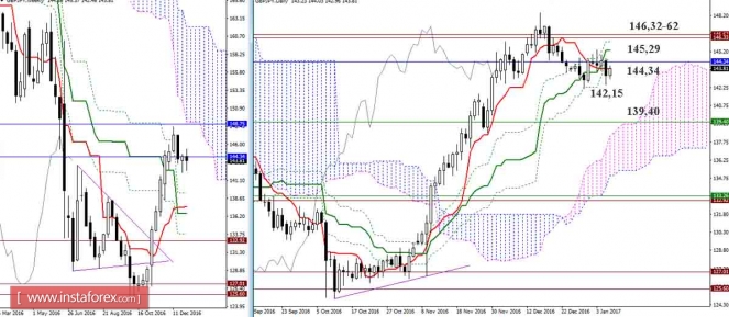 сопротивлений на текущий момент можно отметить 145,29 (дневной Киджун) и