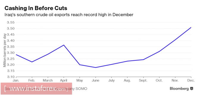 На торгах 9 января котировки фьючерсов на Brent и WTI отметились самым стремительным обвалом, по меньшей мере за последний месяц на фоне сообщений о росте иракского экспорта, что заставило сомневаться в способности Багдада выполнить условия соглашения ОПЕК по сокращению добычи. Согласно исследованиям ClipperData и Commerzbank, поставки черного золота за пределы страны через порты Басры достигнут отметки 3,5 млн б/с в январе. При этом Ирак продолжает уверять в том, что выполнит условия договора и сократит добычу на 210 тыс. б/с в течение первого месяца 2017. Сомнения заставили котировки североморского сорта опуститься к отметке $55 за баррель, минимальной с начала третьей декады декабря.