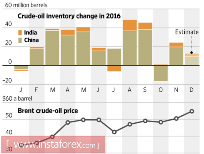 «Бычьи» новости со стороны ОПЕК перекрываются негативом из Штатов и Азии, что уравновешивает позиции противников и способствует развитию консолидации. На неделе к 20 января число буровых установок выросло наиболее быстрыми темпами за последние пять лет (+29), достигнув отметки 551. Goldman Sachs тут же заявил, что если показатель останется на прежнем уровне, то объем добычи нефти в США увеличится на 315 тыс. б/с в течение года. С середины 2016 производство черного золота выросло на 6%, вернувшись к уровням конца 2014, когда ревальвация доллара США способствовала развитию «медвежьего» тренда по Brent и WTI.