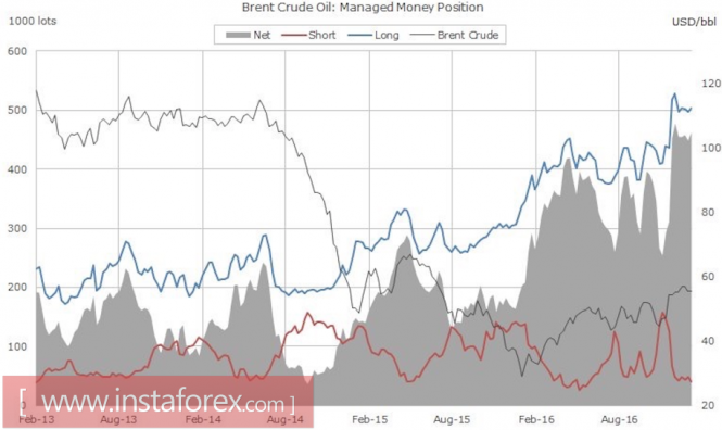 Таким образом, с фундаментальной точки зрения консолидация североморского сорта в диапазоне $52-58 за баррель является вполне закономерной, при этом главным фактором риска выступает раскручивание спекулятивных нетто-лонгов по Brent и WTI, достигших максимальных отметок за всю историю ведения учета. Их размер составляет 820 млн баррелей, что эквивалентно 9 дням мирового спроса. С ноября цены выросли на 20%, что наверняка увеличивает желание некоторых инвесторов зафиксировать прибыль. Поводом может стать любая «медвежья» новость. Например, восстание из пепла доллара США.