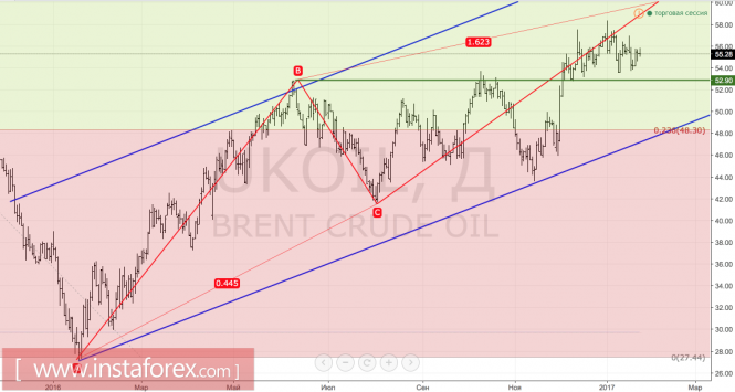 Технически североморский сорт входит в стадию консолидации в рамках восходящего тренда. Ближайшую поддержку следует искать вблизи отметки $52,9 за баррель, в то время как рост котировок в направлении $58 активизирует деятельность продавцов, в числе которых наверняка будут находиться американские хеджеры.