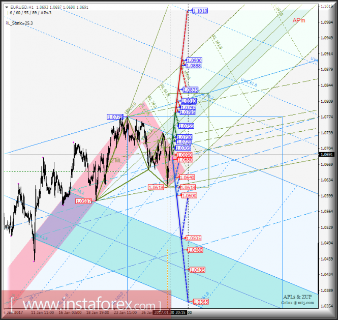 EUR/USD h1. Варианты развития движения с 30 января 2017 г. Анализ APLs & ZUP