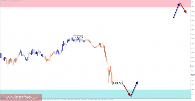 Сегодня, в первой половине дня, ожидается завершение восходящего настроя ценового движения. Ближе к концу дня возрастет вероятность смены направления межсессионного тренда и снижения котировок мажора. Размах снижения, в рамках текущих суток, ограничивается границами расчетной поддержки.