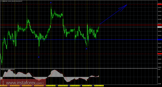 На младшем графике рекомендуется рассматривать ордера на покупку с целью 153,70 при открытии выше 152,67 (Тенкан-сен), ордером Stop Loss выше 152,67 и при направленном вверх индикаторе MACD.