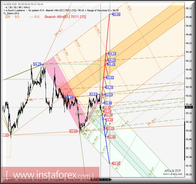 #USDX m30. Развитие движения в период 23 - 25 августа 2017 г. Анализ APLs & ZUP