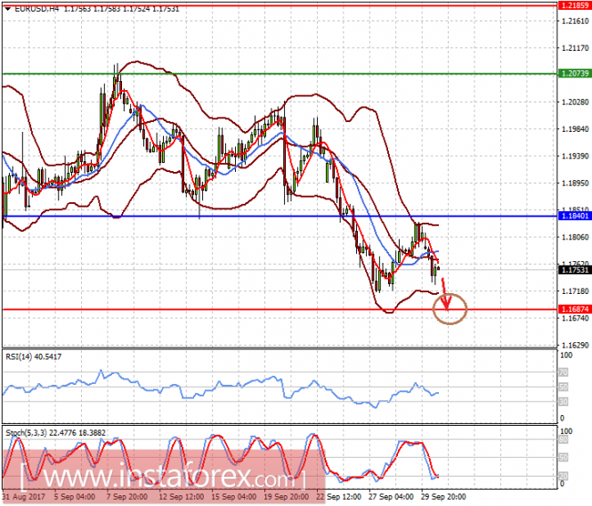 Пара EURUSD торгуется ниже важного, ключевого уровня 1.1800 на волне событий, которые бурно происходят в Каталонии. Негативные новости о желании каталонцев выйти из состава испанского Королевства будут давить на единую валюту в преддверии заседания ЕЦБ по денежной политике. На этой волне пара может упасть к 1.1685 после преодоления отметки 1.1715.