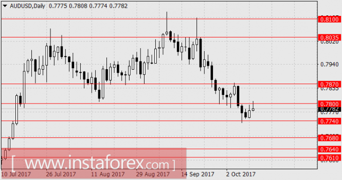 В пятницу публикуется торговый баланс по Китаю за сентябрь, прогноз негативный: 38,4 млрд долларов против 42,0 млрд в августе. Ждём снижение «австралийца» к 0.7680, далее в диапазон 0.7610/40.