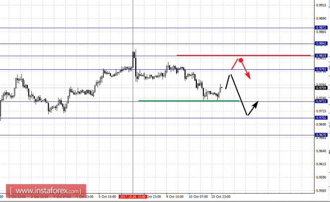 Продолжения движения кверху ожидаем после пробоя 0.9793, в данном случае первая цель – 0.9819, в коридоре