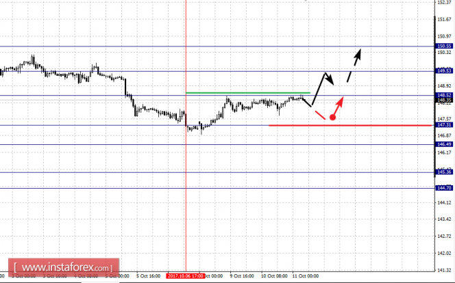 Краткосрочное восходящее движение возможно в коридоре 148.52 – 149.53, пробой