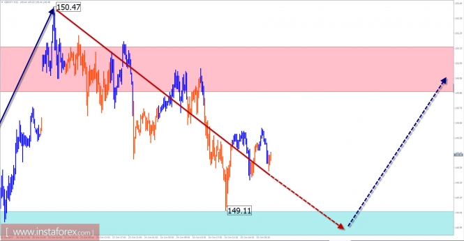 На ближайшей торговой сессии стоит ждать кратковременный ход пары вниз, к границам зоны поддержки. Во второй половине дня возрастет вероятность смены направления сессионного тренда и начала роста котировок пары.