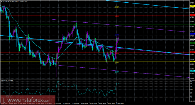 Техническая картина инструмента SILVER по системе «Каналы регрессии» за 2 ноября 2017 года
