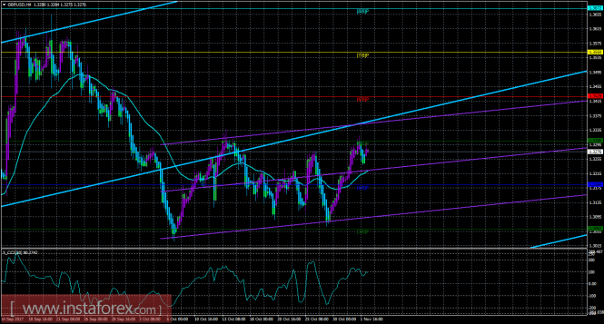 Техническая картина валютной пары GBPUSD по системе «Каналы регрессии» за 2 ноября 2017 года