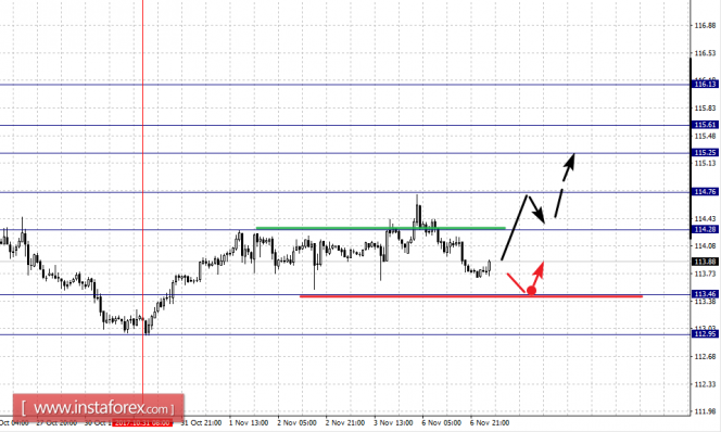 По паре Евро/Доллар продолжения развития нисходящей тенденции в масштабе Н1 ожидаем после пробоя 1.1580. По паре Фунт/Доллар продолжения движения книзу ожидаем после пробоя 1.3094, уровень 1.3214 является ключевой поддержкой. По паре Доллар/Франк возобновления движения кверху ожидаем после пробоя 1.0031. По паре Доллар/Иена следим за восходящей структурой от 31 октября, продолжения движения кверху ожидаем после пробоя 114.24. По паре Евро/Иена последующие цели в масштабе Н1 определили от нисходящей структуры 26 октября. По паре Фунт/Иена цена пока находится в зоне начальных условий для нисходящего цикла от 1 ноября, продолжения движения книзу ожидаем после пробоя 148.49.