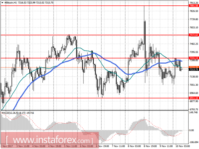 Пока торговля ведется ниже 7331, есть реальный шанс на дальнейшее снижение биткоина в район поддержки 6911, а закрепление под этим уровнем приведет к моментальной распродаже в район 6617, откуда в рынок начнут возвращаться крупные игроки. В случае роста выше 7331, на продажи можно обратить внимание в районах 7572 и 7881.