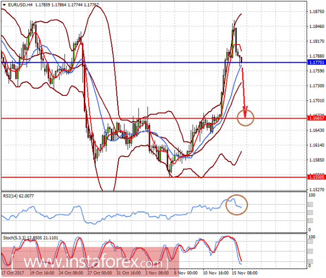 Пара EURUSD откатила от локального максимума на волне позитивных данных из США. Движение вниз может продолжиться, если данные по потребительской инфляции в еврозоне окажутся на уровне прогнозов или хуже. На этом фоне пара может упасть к 1.1665 с перспективой снижения к 1.1550 после пробития уровня 1.1775.