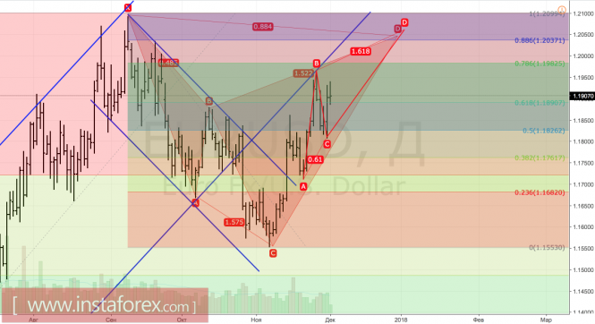 Потребительские цены в еврозоне, несмотря на успехи ВВП и деловой активности, двигаются вверх очень осторожно. В ноябре показатель ускорился с 1,4% до 1,5%, однако не дотянул до консенсус-оценки в 1,6% г/г. Его текущая динамика усиливает вероятность реализации медианного прогноза экспертов Reuters, предполагающего рост инфляции на 1,5% в 2017, на 1,4% в 2018 и на 1,6% в 2019. При таком раскладе ни о каком досрочном выходе из QE, ни о повышении ставок ЕЦБ речь не пойдет. Это обстоятельство усиливает риски развития консолидации EUR/USD в диапазоне 1,17-1,205.