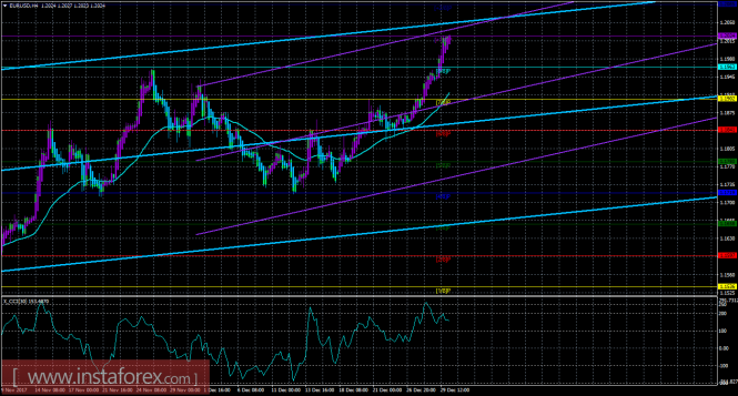 Техническая картина валютной пары EURUSD по системе «Каналы регрессии» за 2 января 2018 года