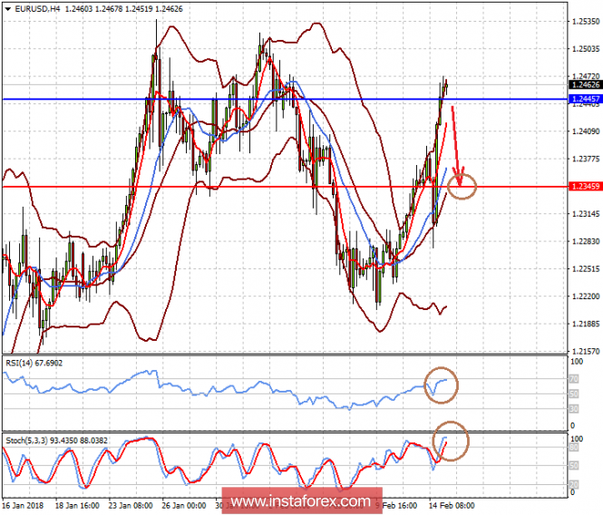 Пара EURUSD выросла на волне локального ослабления доллара. Вероятно, что на фоне роста волатильности и перспективного повышения ставок в Штатах пара снизится к 1.2345, если преодолеет отметку 1.2445.