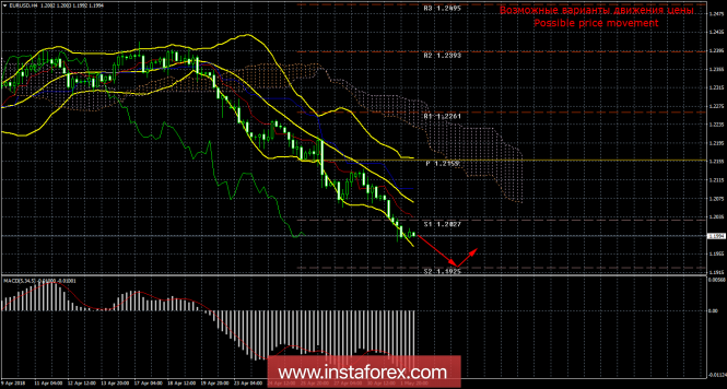 Практически безоткатный рост американской валюты продолжается по паре EUR/USD. Трейдеров даже не смутил тот факт, что практически никаких важных макроэкономических отчетов во вторник, 1 мая, в мире не было. А во многих странах этот день и вовсе имел статус выходного. Тем не менее, как мы уже отмечали, доллар США сейчас продолжает расти по инерции. Многие трейдеры видят, что американская валюта продолжает дорожать и присоединяются к покупкам, что вызывает еще больший рост. Такое сильное движение может сломать либо резкое закрытие крупных позиций по доллару, что сразу приведет к сильному откату, либо серьезное фундаментальное событие, которое заставит участником рынка перестать покупать доллары и начать фиксировать позиции. Пока что ни того, ни того нет, поэтому несмотря ни на что валюта США продолжает показывать рост. С технической точки зрения, продолжает отрабатываться «мертвый крест», который остается сильным, так как цена находится ниже облака Ишимоку. Таким образом, короткие позиции сейчас являются актуальными, а целью для движения вниз выступает второй уровень поддержки 1,1925, так как первый таргет был преодолен. Разворот индикатора MACD наверх укажет на возможный виток восходящей коррекции. Однако индикатор также может начать разряжаться в любой момент. Отскок цены от уровня 1,1925 также может спровоцировать начало коррекционного движения. Средняя волатильность по инструменту выросла до 90 пунктов в день.