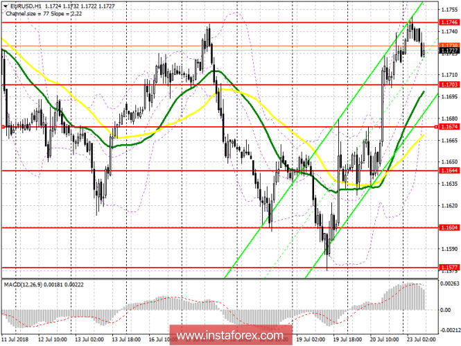 Неудачное закрепление выше 1.1746 будет сигналом к продажам евро в первой половине дня. Основной задачей продавцов будет прорыв и закрепление ниже поддержки 1.1703, что приведет к более крупной распродаже в район области 1.1674, где рекомендую фиксировать прибыль. В случае роста евро в первой половине дня выше 1.1746, продавать можно на отскок от сопротивления 1.1787