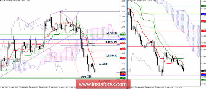 Младшие временные интервалы солидарны с выводами старших таймов. К поддержкам 1,1577-58 здесь нужно добавить понижательную цель на пробой облака Н4. В итоге скопление поддержек формирует действительно важную зону, преодоление которой открывает перед игроками на понижение новые возможности. Заходить на пробой столь сильных поддержек, не имея в арсенале такого тарана, как соответствующий направлению фундаментальный новостной фон, достаточно сложно. При зарождении восходящей коррекции значение сегодня могут иметь 1,1610 (Тенкан Н4 + Киджун Н1) – 1,1640-50 (дневной уровень + облако Н1 + Фибо Киджун Н4) – 1,1670-90 – 1,1708-26.