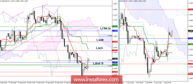 Пара, протестировав нижнюю границу дневного облака (вчера 1,1512, сегодня расположение на 1,1530), приступила к восходящей коррекции. Пробой дневного облака остаётся главной задачей игроков на понижение. В настоящий момент младшие временные интервалы большинством элементов индикатора Ишимоку поддерживают развитие восходящей коррекции, но на пути быков сейчас стоит сопротивление облака Н1. Пробой сформирует повышательную цель и откроет дорогу к последующим важным ориентирам 1,1623 – 1,1660 – 1,1708-26. Вследствие того, что встреченная зона сопротивлений достаточно широкая и образована уровнями различных таймов, здесь возможно формирование консолидации.