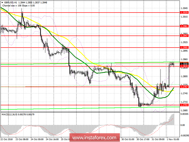 Очередные слухи по Brexit поддержали фунт сегодня на азиатской сессии. Теперь ожидается, что соглашение будет достигнуто к 21 ноября. Что касается покупок, то лучше всего дождаться решения Банка Англии по процентным ставкам и посмотреть на реакцию рынка. Если ниже 1.2839 не пустят и сделают ложный пробой, то рекомендую открывать длинные позиции в расчете на продолжение восходящей коррекции в районы 1.2905 и 1.2947, где лучше всего зафиксировать прибыль. В случае снижения под поддержку 1.2839 в первой половине дня, рассматривать покупки можно на отскок от области 1.2767, где сейчас находятся средние скользящие.