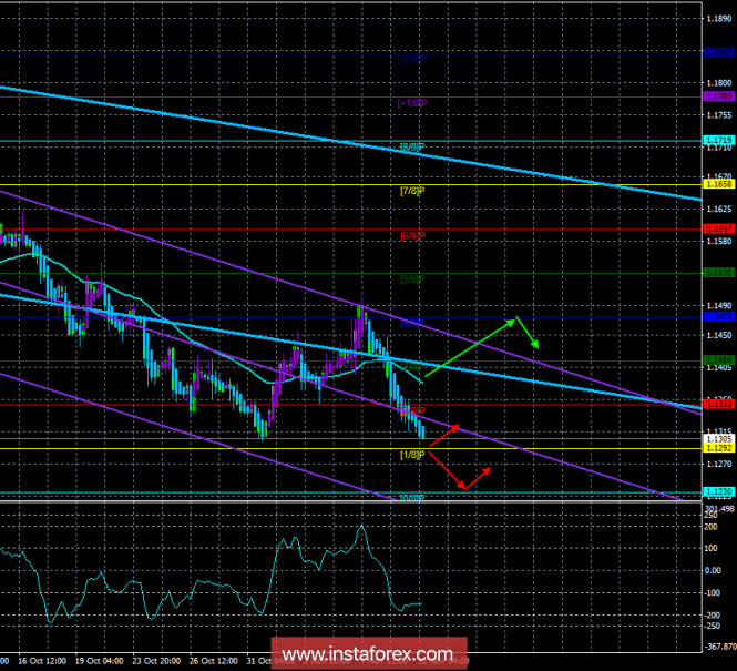 Валютная пара EUR/USD в понедельник, 12 ноября, продолжает нисходящее движение как ни в чем не бывало. После того как техническая коррекция завершилась около уровня Мюррея «4/8», падение котировок не останавливается ни на минуту. Сейчас уже даже сложно сказать, продолжают ли влиять на стратегию торговли трейдеров ситуации с Brexit или бюджетным кризисом в Италии или же доллар США покупается уже по инерции. С технической точки зрения все просто: все индикаторы направлены вниз, Хайкен Аши окрашивает бары в голубой цвет. Все условия для ордеров на продажу есть. Разворот Хайкен Аши наверх – виток коррекции. С фундаментальной точки зрения на понедельник не запланировано никаких важных макроэкономических публикаций ни в США, ни в Евросоюзе. Однако есть все основания предполагать, что трейдеров это нисколько не смутит. Например, на азиатской торговой сессии мы наблюдали довольно сильное падение пары. В текущих условиях единственной реальной причиной укрепления валюты США, с нашей точки зрения, можно назвать все тот же Brexit. Буквально несколько часов назад стало известно, что Брюссель отклонил предложение Терезы Мэй о том, чтобы Великобритания осталась в таможенном союзе после Brexit. Однако это предложение не было принято, а сама Мэй чуть позже отменила экстренное заседание КабМина, на котором должно было состоятся голосование за законопроект Brexit. Похоже, на очень плохой знак...