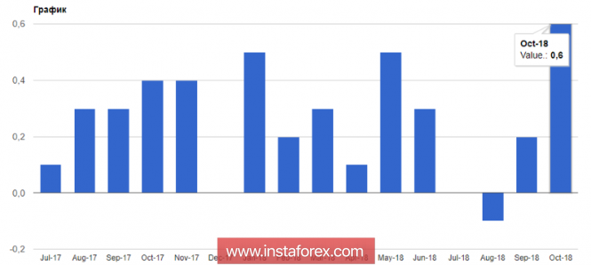 Согласно данным, индекс конечного спроса PPI, так называемый индикатор цен производителей товаров и услуг, в октябре этого года вырос сразу на 0,6% по сравнению с сентябрем. Что касается базового показателя, без учета цен на продукты питания и энергоносителей, индекс увеличился на 0,5% по сравнению с предыдущим месяцем. Экономисты ожидали роста цен производителей на 0,3% и 0,2% соответственно.