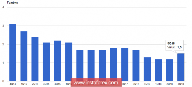 Согласно отчету Национального бюро статистики, в 3-м квартале 2018 года экономика Великобритании выросла на 1,5% в годовом исчислении. По сравнению с предыдущим кварталом ВВП вырос на 0,6%. Эти данные полностью совпали с прогнозами экономистов. Хорошее увеличение расходов потребителей и внешняя торговля оказали поддержку экономике. А вот рост капиталовложения компаний по сравнению с предыдущим кварталом сократился.