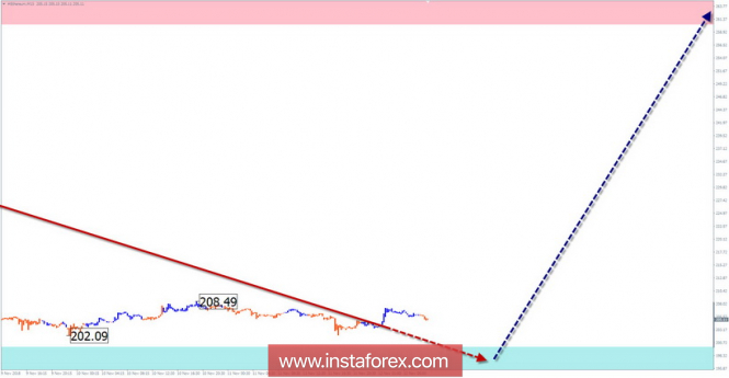 Пояснения к рисункам: В упрощенном волновом анализе используется волны, состоящие из 3 частей (А-В-С). Для анализа используется 3 основных ТФ, на каждом анализируется последняя, незавершенная волна. Зоны демонстрируют расчетные участки с наибольшей вероятностью разворота.