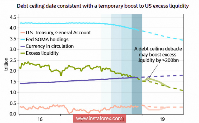 До 1 марта 2019 г. Казначейство не может выпускать новые обязательства, но при этом на конец года будет иметь счет в ФРС на сумму приблизительно 410 млрд долл. До 1 марта вероятно сокращение этого баланса не менее чем на 200 млрд, что будет означать переток наличных денег в банковскую систему.