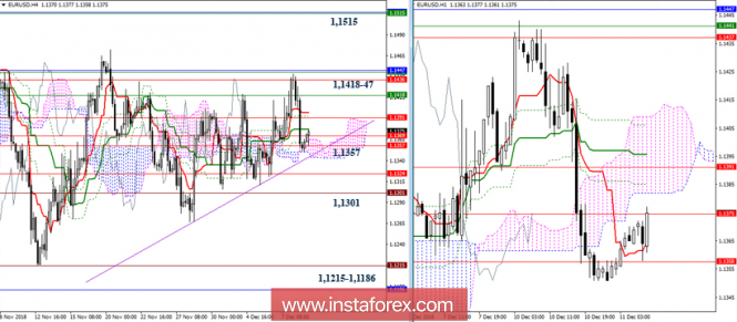 После неудачи у важных сопротивлений пара вернулась в район консолидации, который сейчас пронизан уровнями поддержки и сопротивления различных таймфреймов. Центром консолидации сейчас является облако Н4 (1,1344-65) и дневной крест (1,1357). Закрепление ниже добавит к поддержкам старших таймов ориентиры понижательных целей на пробой облака Н1 и Н4.