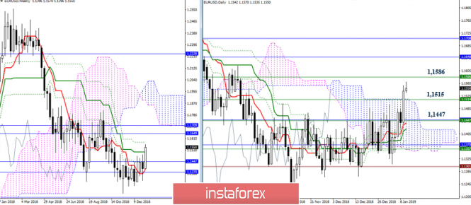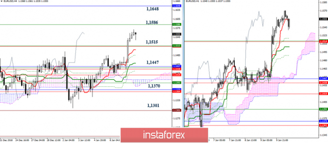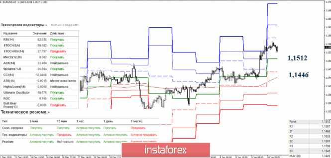 В настоящий момент преимущество на стороне игроков на повышение. Быкам удалось преодолеть многие сопротивления, в том числе и сопротивления целей на пробой облаков младших таймфреймов. Ориентирами сегодня являются уровни старших таймов – для быков 1,1586 и 1,1648, для медведей 1,1515 – 1,1447 – 1,1370 – 1,1301.