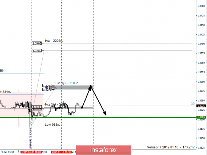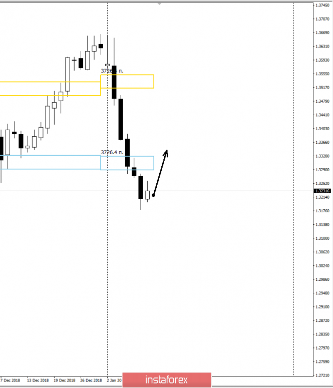 Основным моментом при построении среднесрочного торгового плана является выход пары за пределы месячной КЗ января. Вероятность появления крупного спроса и возврата внутрь зоны возрастает до 90%.