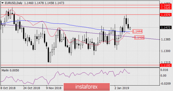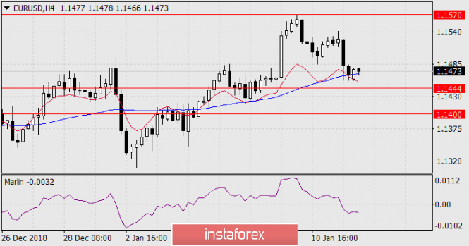 Технически евро также в подвешенном состоянии. С одной стороны сохраняется потенциал для роста в диапазон 1.1620/40 (с предварительным преодолением сильного уровня 1.1570 – максимума 10 января), с другой стороны, в случае провала проекта Мэй, цена может уйти под 1.1400 с прицелом на 1.1195. Предварительными поддержками в этом сценарии выступают 1.1444 и 1.1400 – технические уровни на дневном таймфрейме. Ждём завтрашнего разрешения ситуации в английском парламенте.