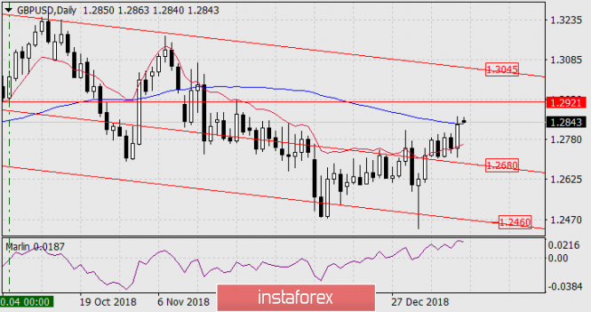 В пятницу фунт стерлингов прибавил 90 пунктов и был удержан линией Крузенштерна дневного таймфрейма. Завтра состоится голосование в английском парламенте по соглашению премьер-министра Мэй с ЕС. Несмотря на все усилия премьер-министра, парламент против. Но это далеко не финал английской эпопеи по выходу из Евросоюза. В какой-то степени провал завтрашнего голосования может быть Англии выгоден, так как позволит выбить из Европы дополнительные преференции. Первой такой попыткой будет принятие поправок в проект 21 января. ЕС пока против дополнений в Соглашении, но со вторника начнётся второй этап взаимного «выкручивания рук». Также Великобритании потребуется заручиться готовностью ЕС перенести дату выхода страны из ЕС, которая сейчас приходится на 29 марта.