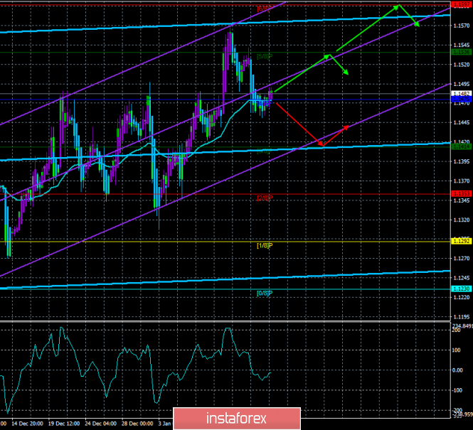 Валютная пара EUR/USD в понедельник, 14 января, торговалась около скользящей средней линии. Важных макроэкономических публикаций в то день не было. Более того, рынки явно затаились в преддверии проведения голосования в британском парламенте по плану Терезы Мэй. Сегодня настал день, который определит дальнейшую судьба взаимоотношений между ЕС и Великобританией. Рынки по-прежнему не верят в то, что парламент примет инициативы Терезы Мэй. Сама же Мэй продолжает оказывать давление на парламент регулярными выступлениями с предупреждениями о чуть ли не апокалипсисе в том случае, если парламент отклонит ее предложение. Ее можно понять, отказ от Brexit будет означать для нее конец политической карьеры. А что ждет евровалюту сегодня и в ближайшее время? Мы считаем, что реакция на результаты голосования по Brexit сегодня, безусловно, последует, однако в более долгосрочном плане эффект сегодняшнего дня будет нивелирован. Все-таки для Евросоюза имеет меньшее значение Brexit. Вечером также состоится выступление Марио Драги, главы ЕЦБ, которое потенциально тоже может быть очень интересным и может оказать влияние на настроение трейдеров. С технической точки зрения восходящая тенденция сохраняется по инструменту, так как цены продолжает располагаться немного выше мувинга.