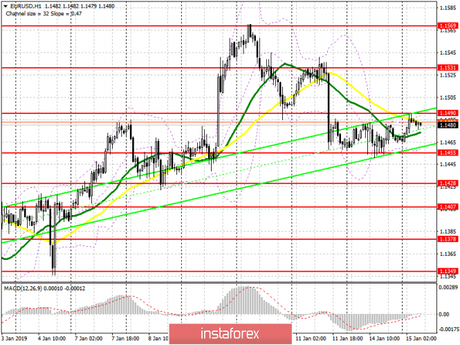 Медведи будут и дальше оказывать давление на евро, а основной задачей станет прорыв поддержки 1.1455, что приведет к более крупной нисходящей коррекции в район 1.1428 и 1.1407, где проходит нижняя граница нисходящего канала. В случае роста EUR/USD в первой половине дня, присмотреться к коротким позициям можно на ложном пробое уровня 1.1490, откуда в рынок будут возвращаться крупные продавцы, но это при условии слабых фундаментальных данных по еврозоне. В случае отсутствия быстрого снижения от вышеуказанного диапазона, продавать можно на отскок от максимума 1.1531.