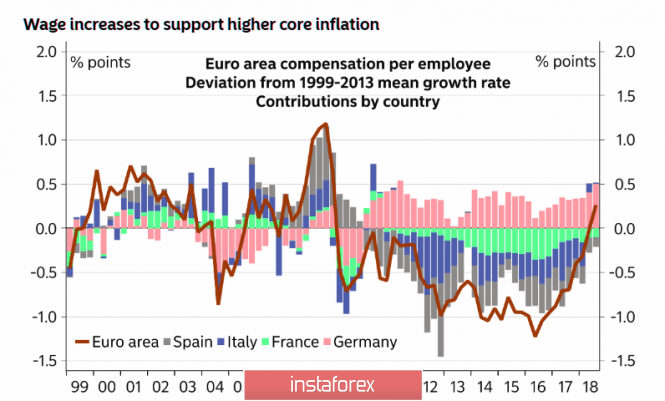 Рост заработной платы предполагает, что инфляция также будет разгоняться, пусть даже и невысокими темпами. К концу 2019 года (осень 2018 года, когда инфляция замедлялась под влиянием сразу нескольких факторов уйдет из расчетов) рост цен станет более устойчивым, а у ЕЦБ появятся основания для роста ставки.