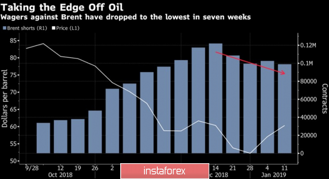 Чрезмерная перепроданность нефти в условиях потенциального улучшения глобального спроса, проблем американских производителей и сокращение добычи ОПЕК заставляют спекулянтов избавляться от коротких позиций по североморскому сорту. По итогам недели к 8 января их величина упала на 3,6%, что расширило нетто-лонги до 158146 фьючерсных и опционных контрактов (+3,8%).